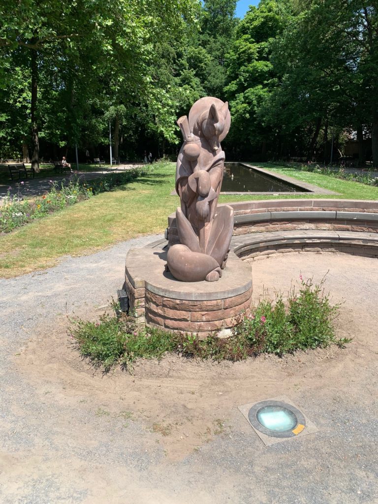 Het Reinaertstandbeeld is daar ook te bewonderen! Met een bankje errond voor te genieten van het standbeeld en het park.